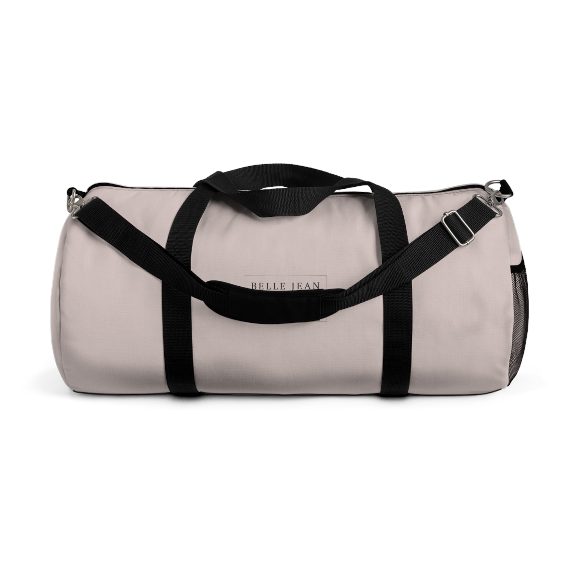 A compact, go-anywhere duffel that carries your day with quiet confidence. Lightweight 100% polyester Oxford canvas holds its shape while shrugging off dampness, and a roomy main compartment with a durable double-zipper keeps clothes and gear secure. An internal zip pocket with a sewn name tag tucks away small essentials, while the exterior mesh side pocket gives fast access to a water bottle or keys. Carry it by the reinforced handles, or switch to the wide adjustable shoulder strap with pad and brushed-nickel hardware for hands-free travel. Clean, minimal styling in neutral tones blends with gym clothes, weekend gear, or overnight packing—built for adults who travel light but mean business.